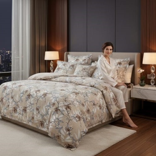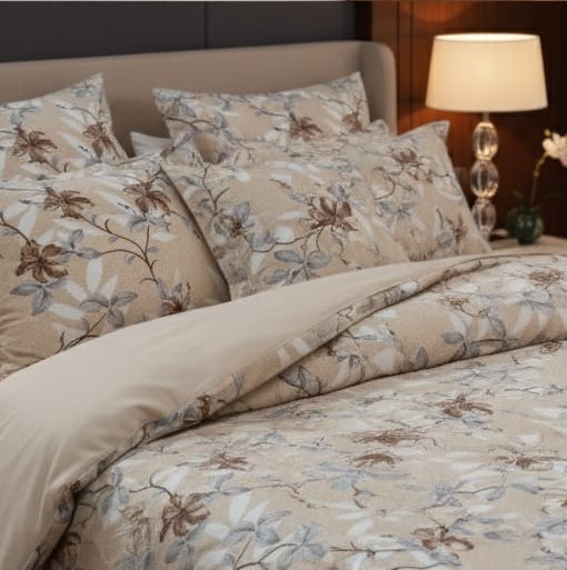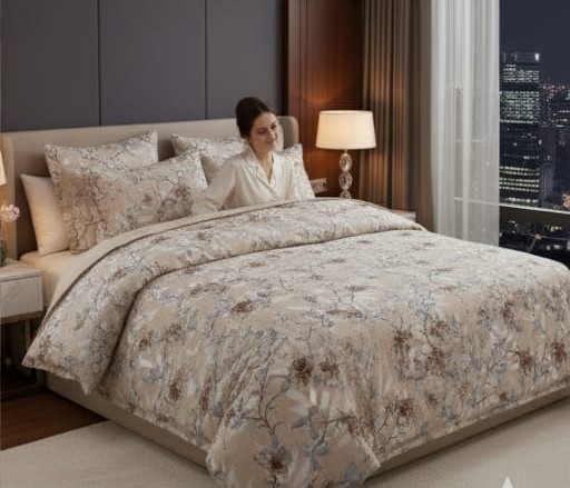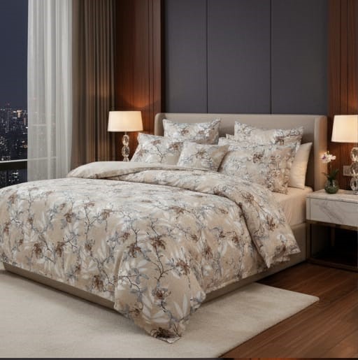 Upgrade your bedroom décor with Deepmaala Textiles’ Floral Glace Cotton Bedsheet Set, crafted to blend beauty and comfort. The premium glace cotton fabric offers a luxurious sheen, smooth texture, and long-lasting softness. Its charming floral print in blue and white tones enhances the , creating a refreshing and modern look for any room.