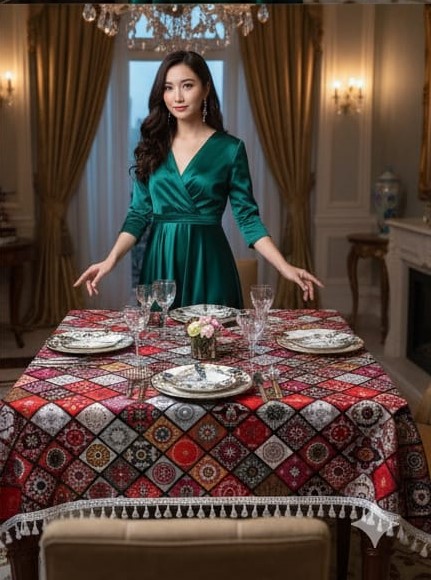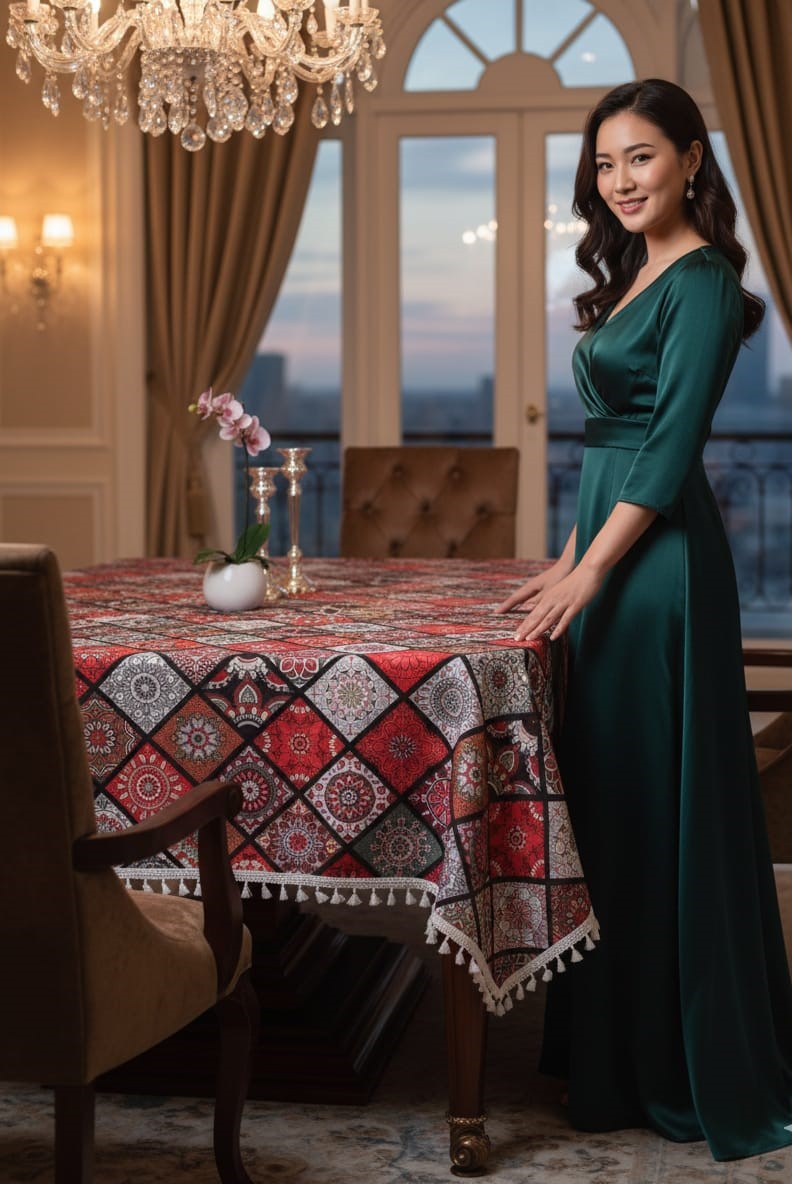 Featuring a stylish mix of rich browns, deep reds, and floral prints, this tablecloth is perfect for both everyday use and festive occasions. The easy-to-clean material ensures long-lasting beauty with minimal maintenance.