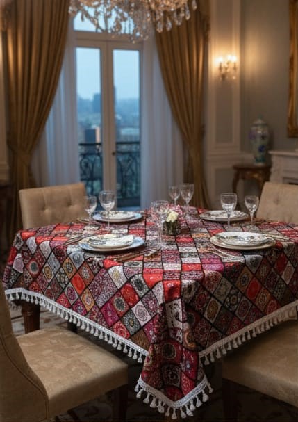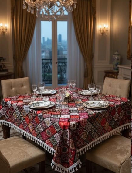 Bring a vibrant touch to your dining space with this elegant floral designer table cover, crafted for 4-seater dining tables. Made from high-quality, , it protects your table from spills, stains, and heat damage while enhancing your home décor.