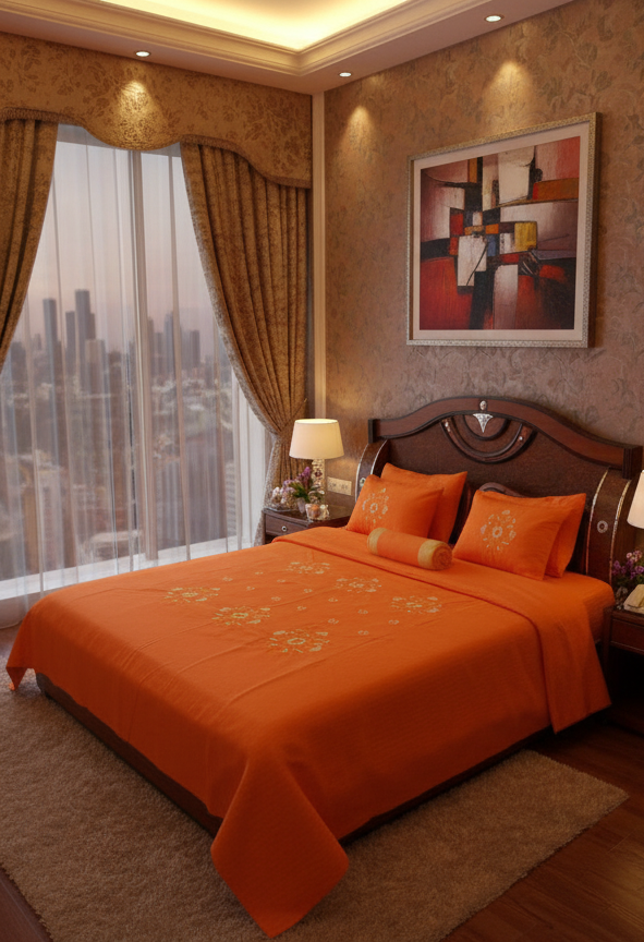This premium set comes with two matching pillow covers, completing the royal look for your bedroom.
