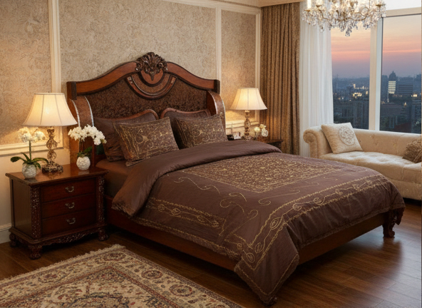 Give your bedroom a majestic makeover with this Royal Brown Embroidered Bedsheet Set from Deepmaala Textiles. Crafted from high-quality glace cotton, this bedsheet offers a soft, elegant sheen and superior comfort.